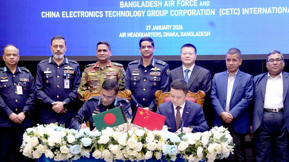 দেশেই মনুষ্যবিহীন আকাশযান বা ড্রোন তৈরি করবে বিমানবাহিনী। মঙ্গলবার ঢাকা সেনানিবাসের বিমানবাহিনী সদর দপ্তরে বিমানবাহিনী এবং চায়না ইলেকট্রনিক্স টেকনোলজি গ্রুপ করপোরেশন ইন্টারন্যাশনালের (সিইটিসি) মধ্যে গভর্নমেন্ট টু গভর্নমেন্টের আওতায় ড্রোন উৎপাদন ও সংযোজন কারখানা স্থাপন এবং প্রযুক্তি হস্তান্তর প্রকল্পের জন্য চুক্তিটি স্বাক্ষরিত হয়। বিমানবাহিনী প্রধান এয়ার চিফ মার্শাল হাসান মাহমুদ খান চুক্তি স্বাক্ষর অনুষ্ঠানে প্রধান অতিথি হিসাবে উপস্থিত ছিলেন। সংবাদ বিজ্ঞপ্তিতে এ তথ্য জানিয়েছে আন্তঃবাহিনী জনসংযোগ পরিদপ্তর (আইএসপিআর)।